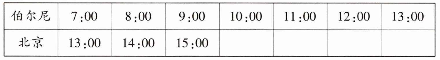 五、下面是北京时间与瑞士首都伯尔尼的时间对照表。