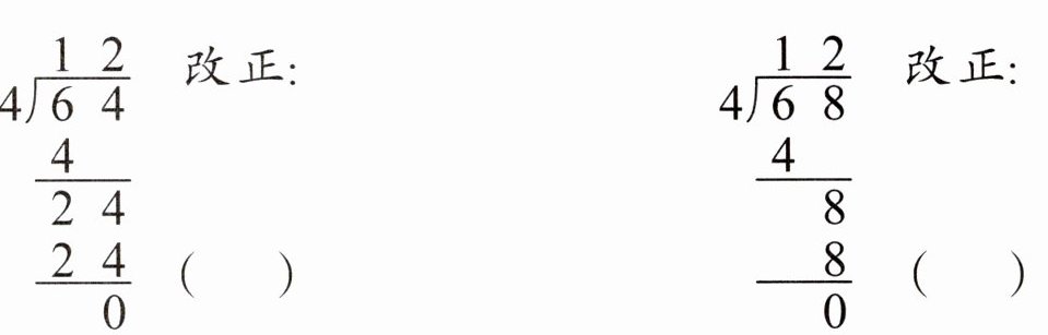 三、数学医生。(对的打“√”,错的打“×”并改正)