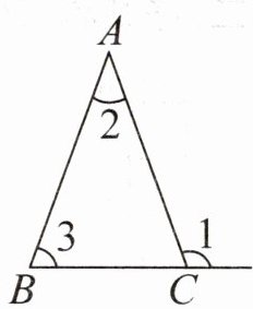 3. 如图所示,已知三角形ABC是等腰三角形,$AB=AC,∠1=110^{\circ }$,求$∠2$和$∠3$的度数。