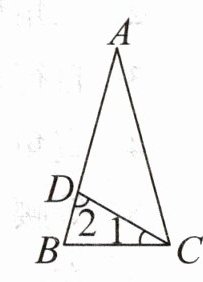 1. 如下图,已知$∠A=∠1=30^{\circ },AB=AC$,求$∠2$的度数。