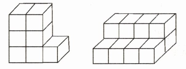 下面的图形都是用棱长 1 厘米的小正方体拼成的,填出它们的体积各是多少立方厘米。