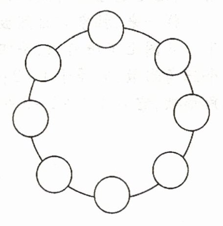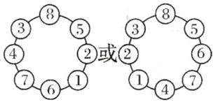 把 1~8 这八个自然数分别填入大圆上的八个小圆圈内,使任意相邻两个小圆圈内数的和都是质数。