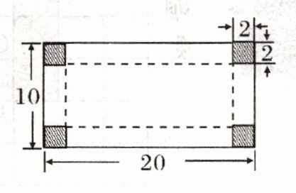 有一块长方形铁皮(如图),剪掉四角(阴影部分),沿虚线折起来,做成一只无盖铁盒。求这只铁盒的容积。(单位:厘米)