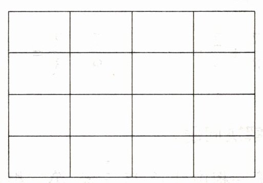二 在下面方格纸上涂色表示$\frac {8}{16}$。