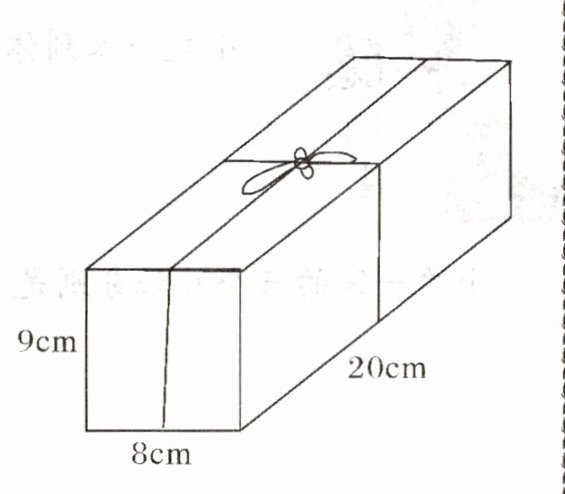 已知长方体的长$= 20cm$,宽$= 8cm$,高$= 9cm$,结头处$12cm$。
