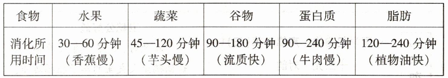 阅读食物消化时间表,回答问题。