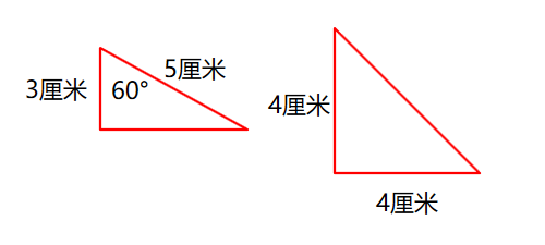 1. 两条边分别是 3 厘米和 5 厘米,它们的夹角是$60^{\circ}$的三角形。