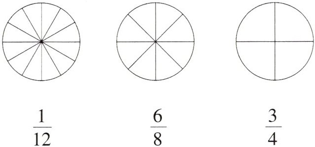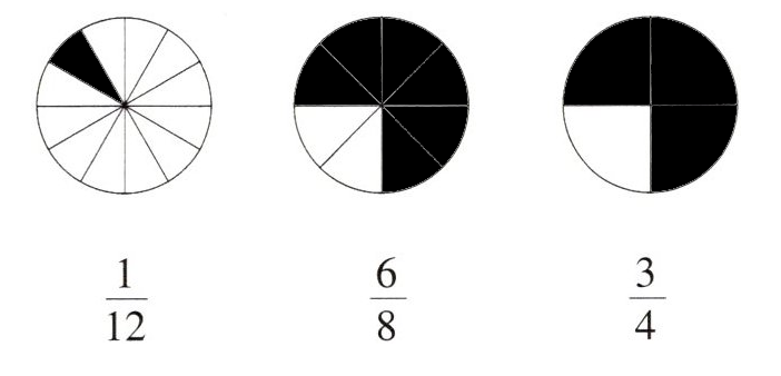 1. 用阴影部分表示下面的分数,你发现了什么?