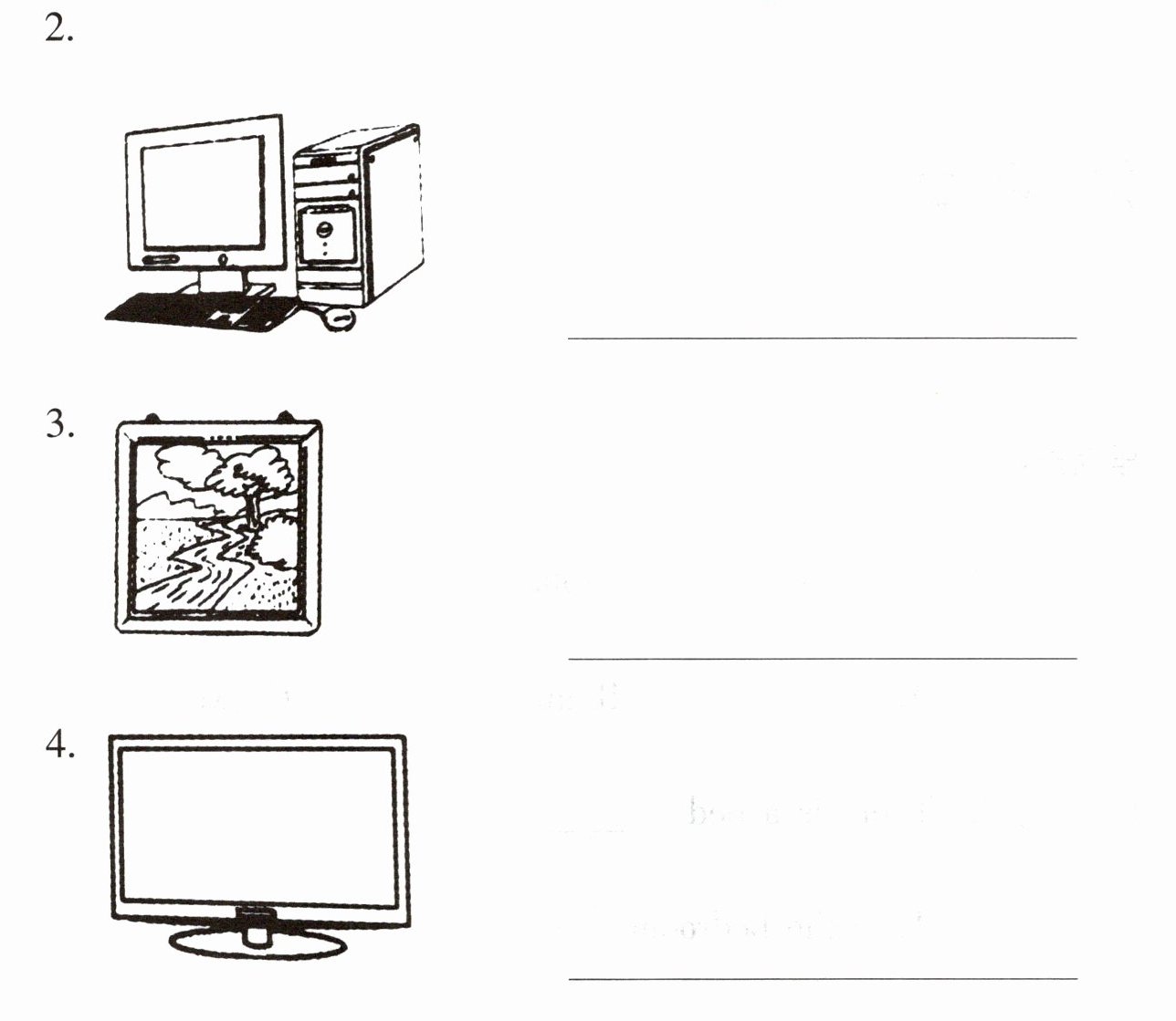 1. study 2. computer 3. picture 4. TV
