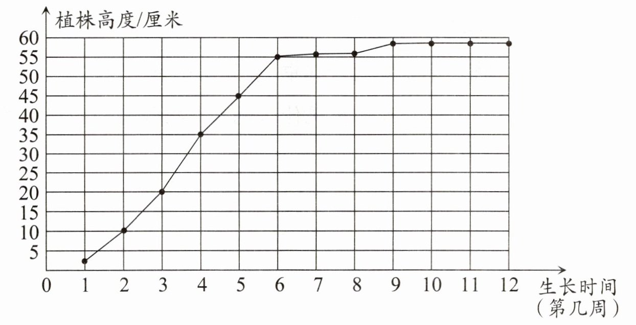 3. 小明定期测量不同生长阶段植株的“身高”,并绘制成折线图。认真分析下图并回答问题。