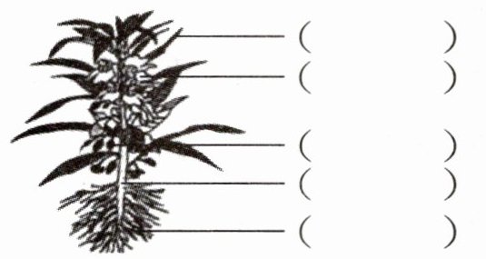 1. 把凤仙花各部分的名称填在相应的括号里,并与它们的作用连起来。