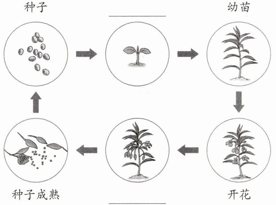 2. 在下图横线上填入凤仙花相应的生长阶段。