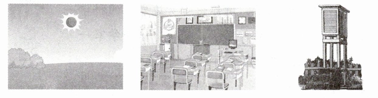 二、气象人员测量气温时,一般把温度计放在什么位置?请在括号里画“√”。