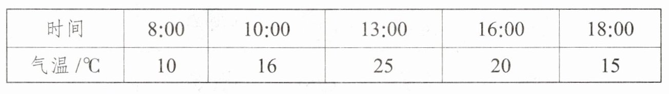 下面是一天内在操场上同一地点但不同时间记录下的气温数据。