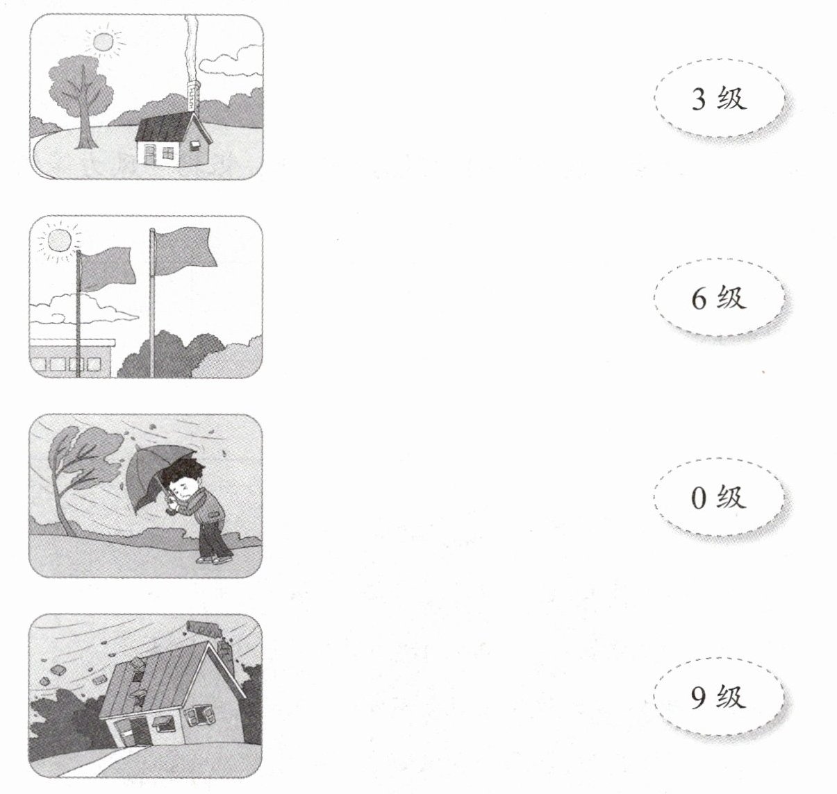 三、连一连。(将下面的图片与其对应的风力等级连接起来)
