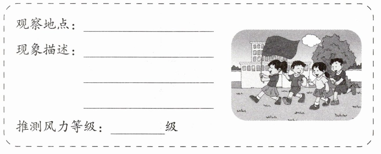四、在校园内寻找一处风力痕迹(如落叶、旗帜状态等),记录现象并推测风力等级。
