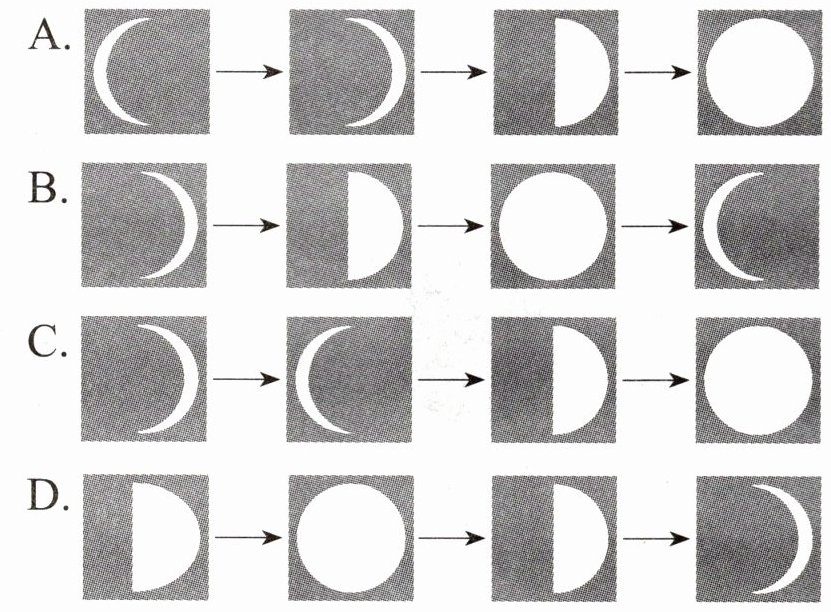 2. 一个月内,月相的变化顺序正确的是(