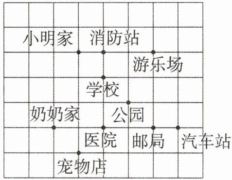(2)小明家→学校→奶奶家→宠物店→医院→公园→邮局→游乐场→消防站→小明家.