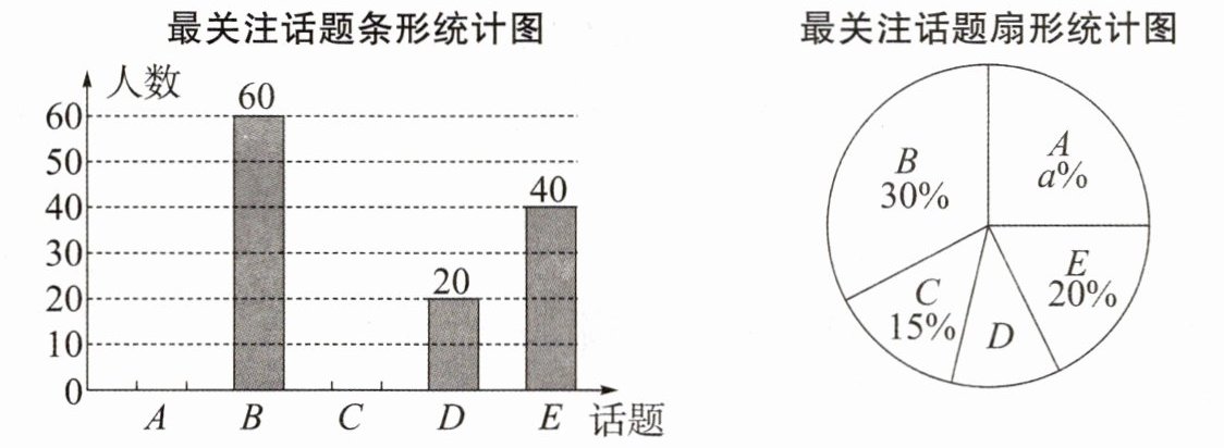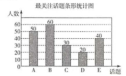 22. 某校数学实践小组就近期人们比较关注的五个话题:“A. 5G 通信;B. 民法典;C. 北斗导航;D. 数字经济;E. 小康社会”,对某小区居民进行了随机抽样调查,每人只能从中选择一个本人最关注的话题,根据调查结果绘制了统计图. 请结合图中的信息解决下列问题: