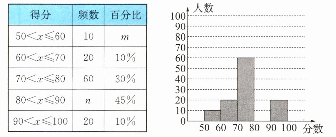 (2)在统计表中,$m=$______,$n=$______;在扇形统计图中“$70\lt x\leqslant 80$”所在扇形的圆心角的度数为______;