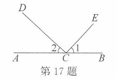 17. 如图,A,C,B 在同一条直线上,已知$∠1=53^{\circ },∠2=37^{\circ }$,则 CD 与 EC 的位置关系是