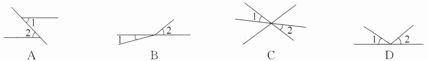 11. 下列各图中,$∠1$与$∠2$是对顶角的是(