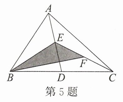 5. 如图,在△ABC中,已知点D,E,F分别为BC,AD,CE的中点,且$S_{△ABC} = 16 cm²,$则阴影部分面积为 (