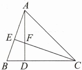 例4 如图,$\triangle ABC$的两条高$AD$,$CE$相交于点$F$,若$\triangle ABD\cong \triangle CFD$,$DC=6$,$DF=2$,则$\triangle ABC$的面积为______