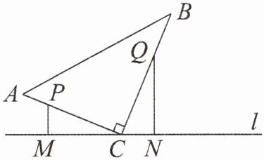 11. 如图,在$\triangle ABC$中,$\angle ACB=90^{\circ}$,$AC=7\mathrm{cm}$,$BC=8\mathrm{cm}$. 点$C$在直线$l$上,动点$P$从$A$点出发沿$A\to C$的路径向终点$C$运动;动点$Q$从$B$点出发沿$B\to C\to A$路径向终点$A$运动. 点$P$和点$Q$分别以每秒$1\mathrm{cm}$和$2\mathrm{cm}$的速度同时开始运动,其中一点到达终点时另一点也停止运动,分别过点$P$和$Q$作$PM\perp$直线$l$于$M$,$QN\perp$直线$l$于$N$. 当$\triangle PMC$与$\triangle QNC$全等时,求点$P$的运动时间.