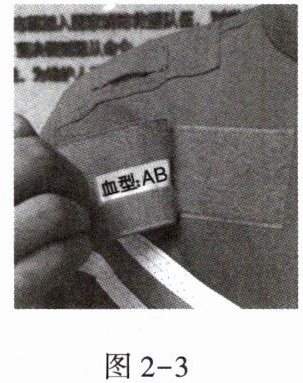 4. 消防服的右胸口都有胸牌,里面写着消防员自己的血型。如图2-3中的“蓝朋友”遇到危险需要输血,应输入(