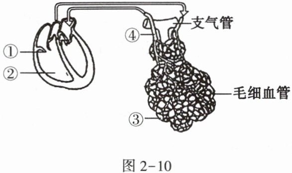 8. (2024·河北)图2-10为肺循环示意图,箭头表示血流方向,①②③④表示结构。下列说法错误的是(