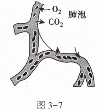 11. 图3-7表示人体内肺泡与血液之间的气体交换,相关叙述不正确的是 (