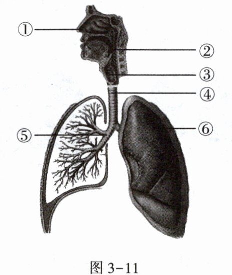 16. (2024·齐齐哈尔改编)图3-11是人体呼吸系统的结构示意图,请据图回答下列问题。