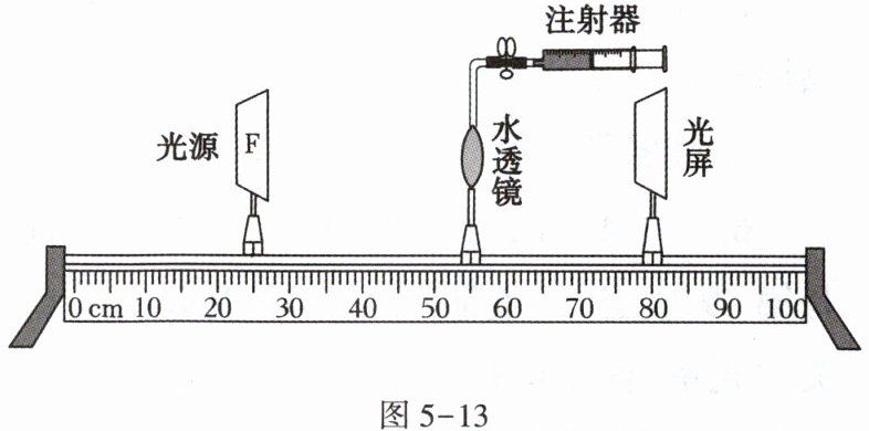 )学过物理成像原理后,该社团同学在实践课上利用物理仪器制作了如图5-13所示装置(内推注射器可使水透镜曲度变大,反之则变小)进行探究活动,下列说法错误的是____(填字母)。A. 光屏模拟形成物像的视网膜