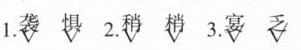 2.妈妈提醒强强走路时(稍 梢)微低着头,以免碰到柳(稍 梢)。