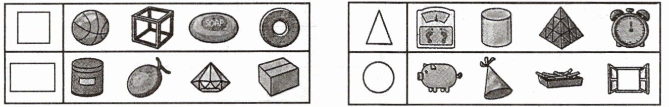 一、用哪个物体可以画出左边的图形?圈一圈。