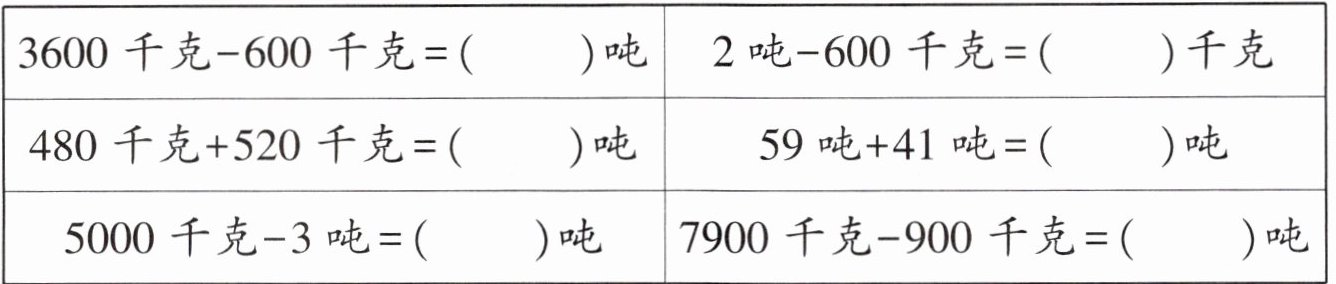 7 吨>500 千克>4 千克>3000 克;3吨>450千克>200千克>2千克