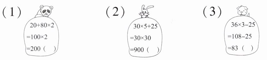二、下面的计算对吗?对的在( )里打“√”,错的在( )里打“×”并改正。