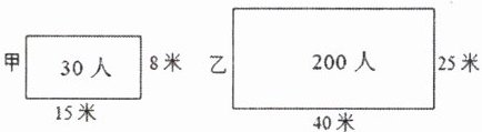 3. 如图表示两个游泳池的长、宽以及池内的人数,比较两池的拥挤程度,结果是(