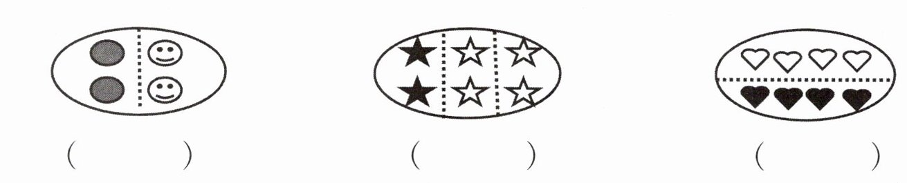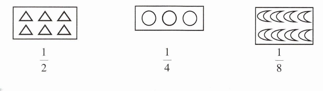 五、在每个图中先分一分,再涂色表示它下面的分数。