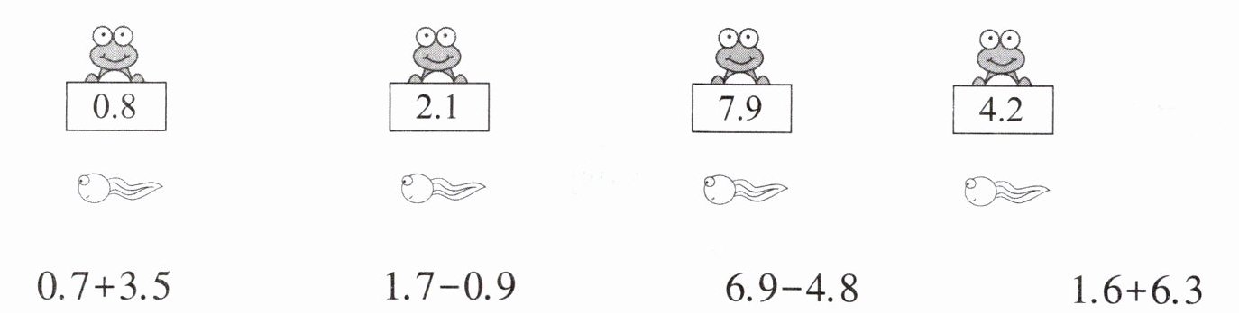 【答案】:$0.7 + 3.5$连$4.2$;$1.7 - 0.9$连$0.8$;$6.9 - 4.8$连$2.1$;$1.6 + 6.3$连$7.9$。