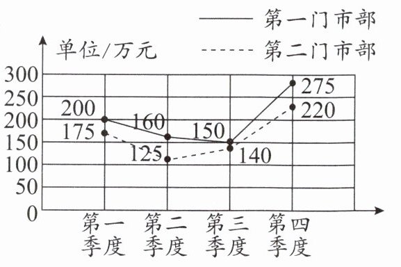 )万元。(4) 第四季度第二门市部营业额比第一门市部营业额少(