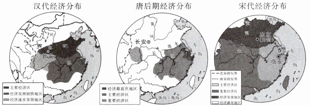 8. (2024 四川成都中考)下图为汉、唐、宋经济分布变化示意图。据此可知,从汉代到宋代 (