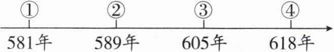 1. 下面是隋唐时期重大历史事件的时间轴,其中②处所代表的历史事件可能是 (