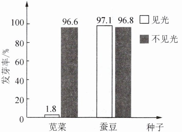 5. 小刚通过实验探究光照对种子萌发的影响(其他环境条件均适宜),下图是根据实验结果绘制的统计图,分析可知 (