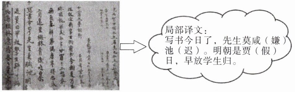 5. (2024 四川乐山中考)唐朝时期,汉文在西域已成为一种盛行的语言文字。下图是新疆地区出土的唐代文书,长 538 厘米,宽 27 厘米,内容是当地 12 岁学童卜天寿抄写的《论语》《千字文》及创作的诗歌等。材料反映了 (