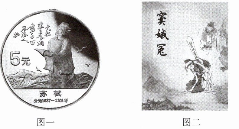 。(2)材料二中图一纪念币上是一位北宋词人,他的词有什么特点? 元朝的戏曲空前发达,图二反映的内容是这一时期哪位杂剧作家的作品? (4 分)