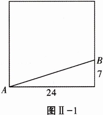 3. 如图Ⅱ-1,有一块边长为24m的正方形绿地,在绿地旁边B处有健身器材,由于居住在A处的居民践踏了绿地,小明想在A处立一个标牌“少走