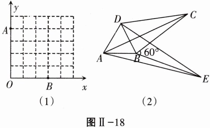 (3)如图Ⅱ-18(2),将$△ABC$绕顶点B按顺时针方向旋转$60^{\circ }$,得到$△DBE$,连接AD,DC,已知$∠DCB= 30^{\circ }$.求证:四边形ABCD是勾股四边形.