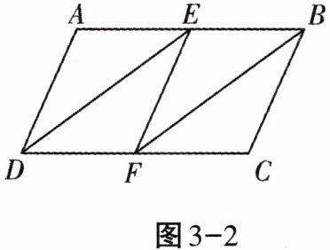 5. 如图3-2,在$□ ABCD$中,$E$,$F分别是AB$,$CD$的中点,连接$DE$,$EF$,$BF$,则图中的平行四边形共有(
